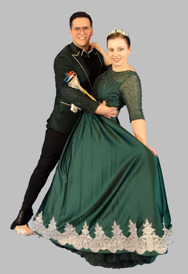 Unser diesjähriges Prinzenpaar war wieder aus unseren Reihen, Anja I. (Sommerfeld) & Benni I. (Sommerfeld). Beide in grün, Silber und Benni noch schwarz dazu, haben sie ein super Standartprogramm auf die Beine gestellt. Selbst choreografiert, einstudiert und trainiert, nur mit kleinen Hilfen von Trainern. Die Mädels hatten ein Thema in ihrem Marsch und modernen Teil, Festival Fever. Auch sie in den Farben: grün, Silber, schwarz und viel Glitzer und Fransen überzeugten sie auf der Bühne Techno und Latino – Festival. Ganz nach dem Motto, einfach einmal unbeschwert sein und mit der Musik bewegen, war es eine Augenweide den 9 Gardemädels zu zuschauen. Unsere 8 Männer waren dieses Jahr unsere Bauern oder ganz dem Thema „Bauer sucht Frau“. In der Musik fand man Country, Rock, Bayrisch und Ententanz. Sie begeisterten unser Publikum wieder sehr mit ihrer Choreografie und ihrer Mimik. In Latzhosen, Karohemden, Strohhüten und Mistgabeln, marschieren sie auf die Tanzfläche, nachdem ihre Portraitbilder bereits die Zuschauer begeisterten.